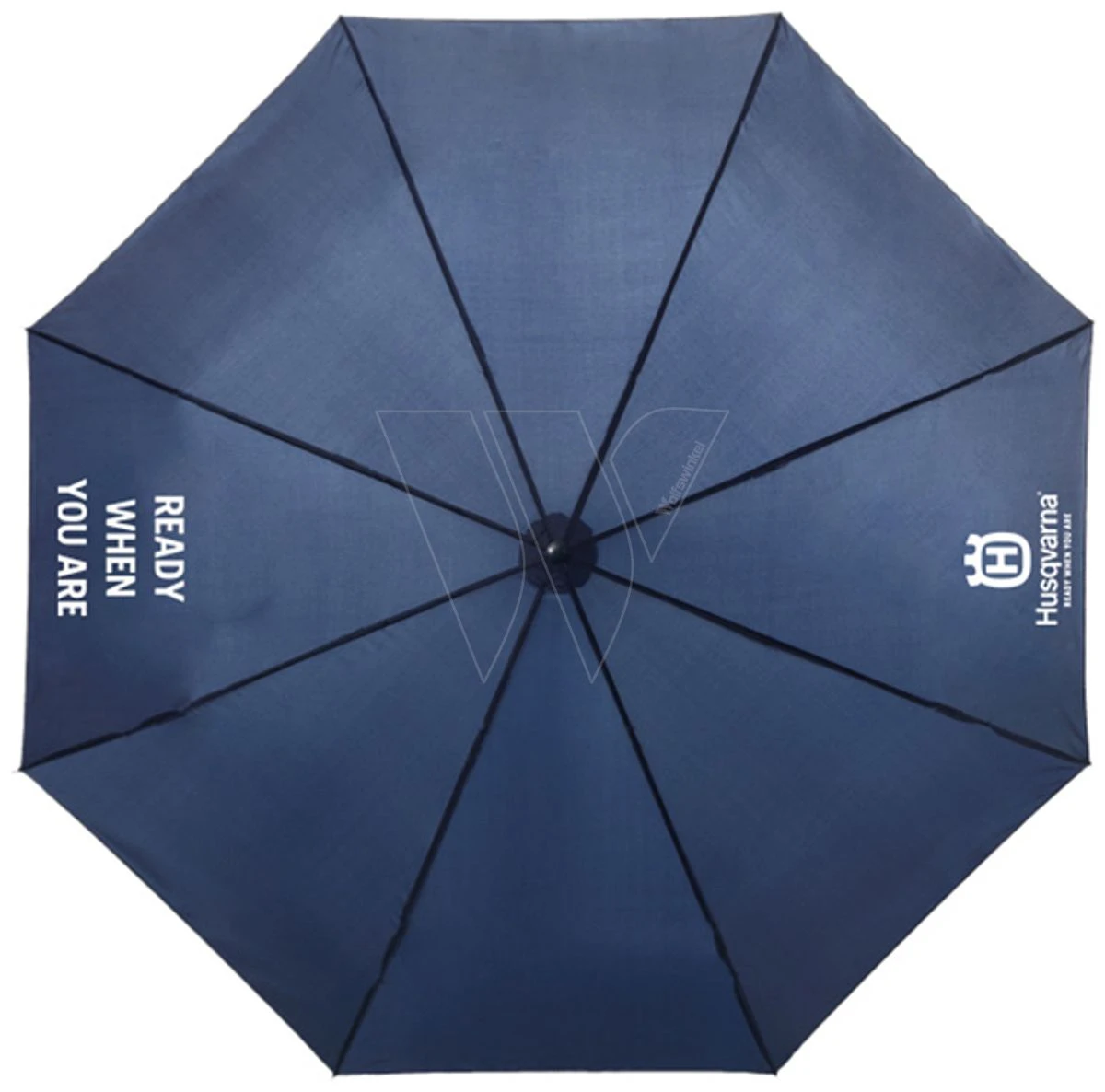 Mooie grote Husqvarna paraplu met de tekst “ready when you are”. De Husqvarna paraplu is 23′, automatisch en heeft 8 panelen. De navy kleurige paraplu is bedrukt met een witte print. Deze Husqvarna paraplu kan u natuurlijk beschermen tegen de regen, maar ook tegen de zon!