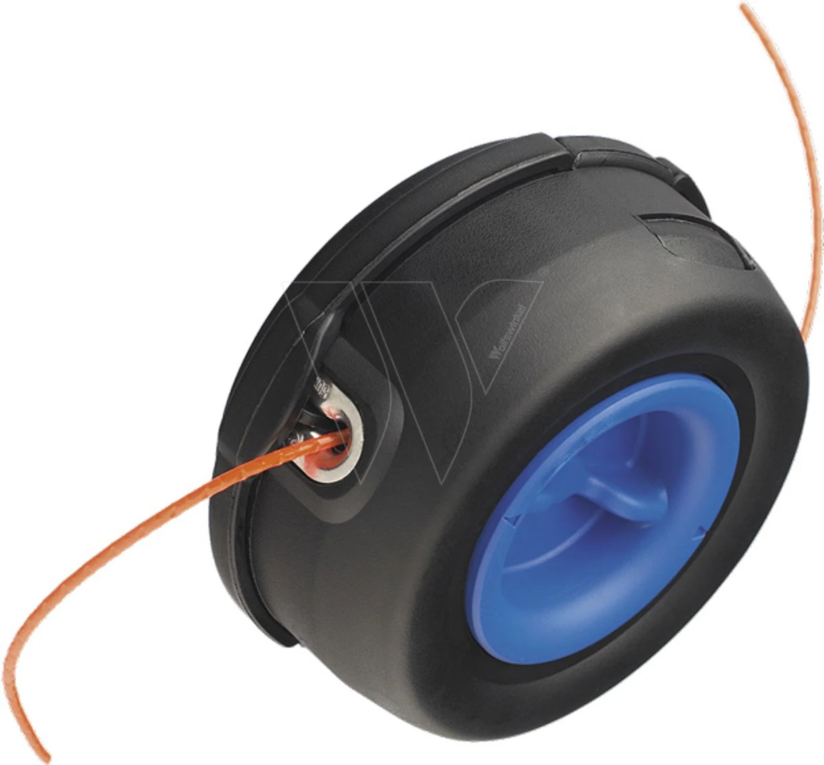 Trimmerkop met handmatige draaddoorvoer. Door op de draaddoorvoerknop te drukken en aan de draad te trekken wordt de gewenste lengte gekozen.